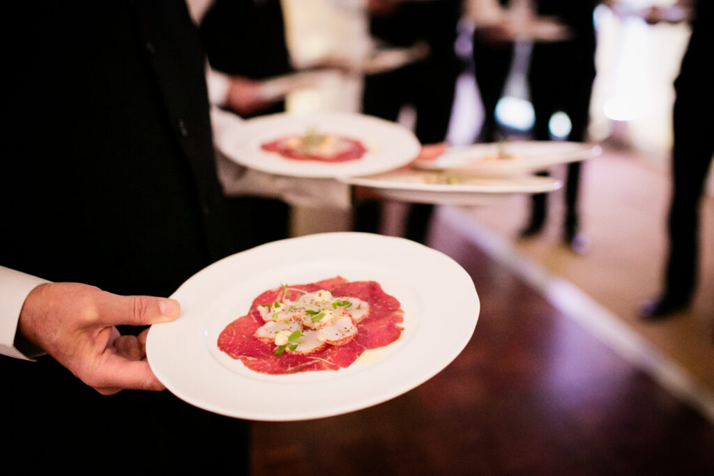 We provide the kitchen and waiting staff. If it is a small dinner, that may just be one chef and one butler. No matter the numbers, our team always work discreetly and we ensure that 80 per cent of the work is done before we even arrive. Once we are at your home/venue our focus is on making the occasion as special as possible. Your menu will be prepared and plated to the highest standard. What’s more, we work cleanly and conscientiously; everything will be cleared and packed away, all you need to do is relax and enjoy.